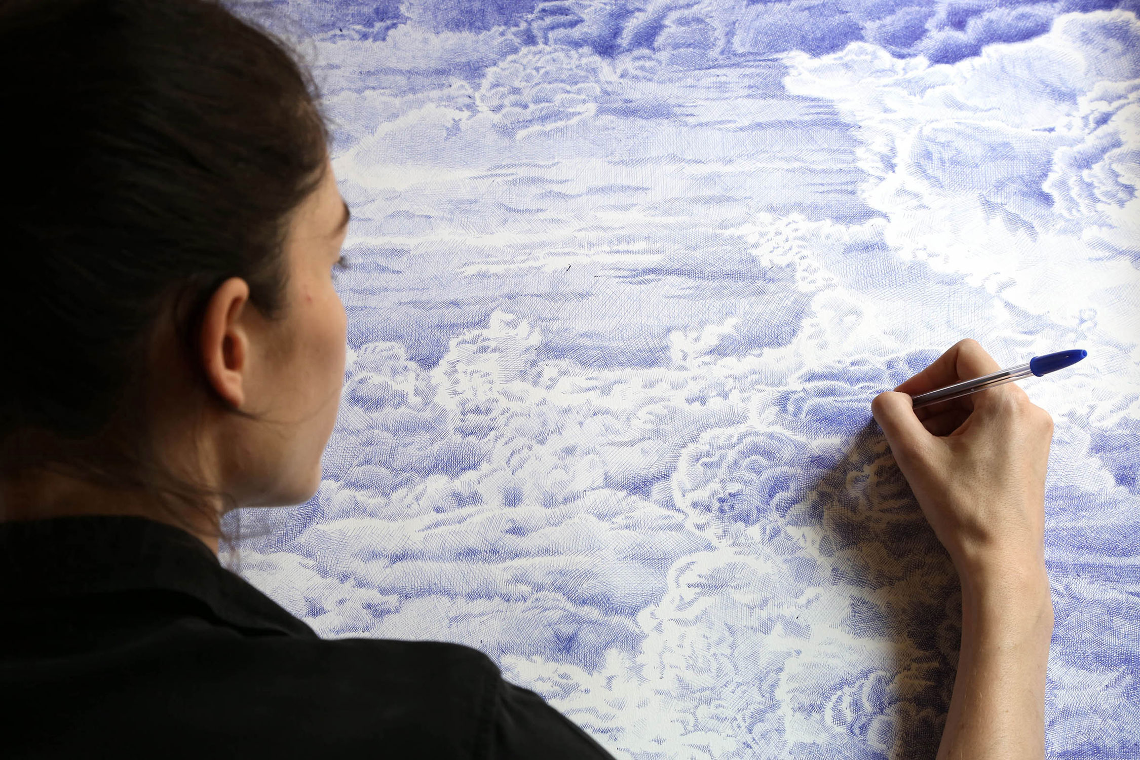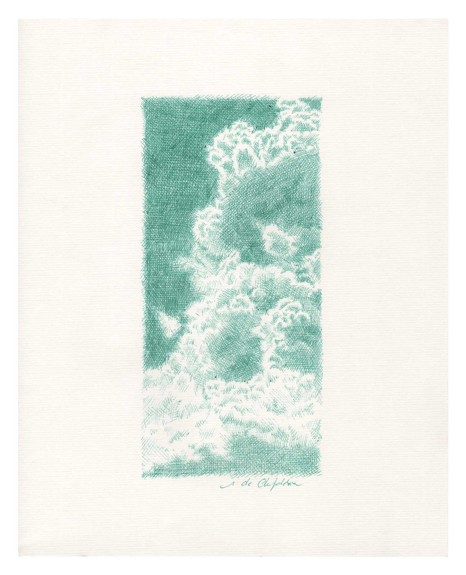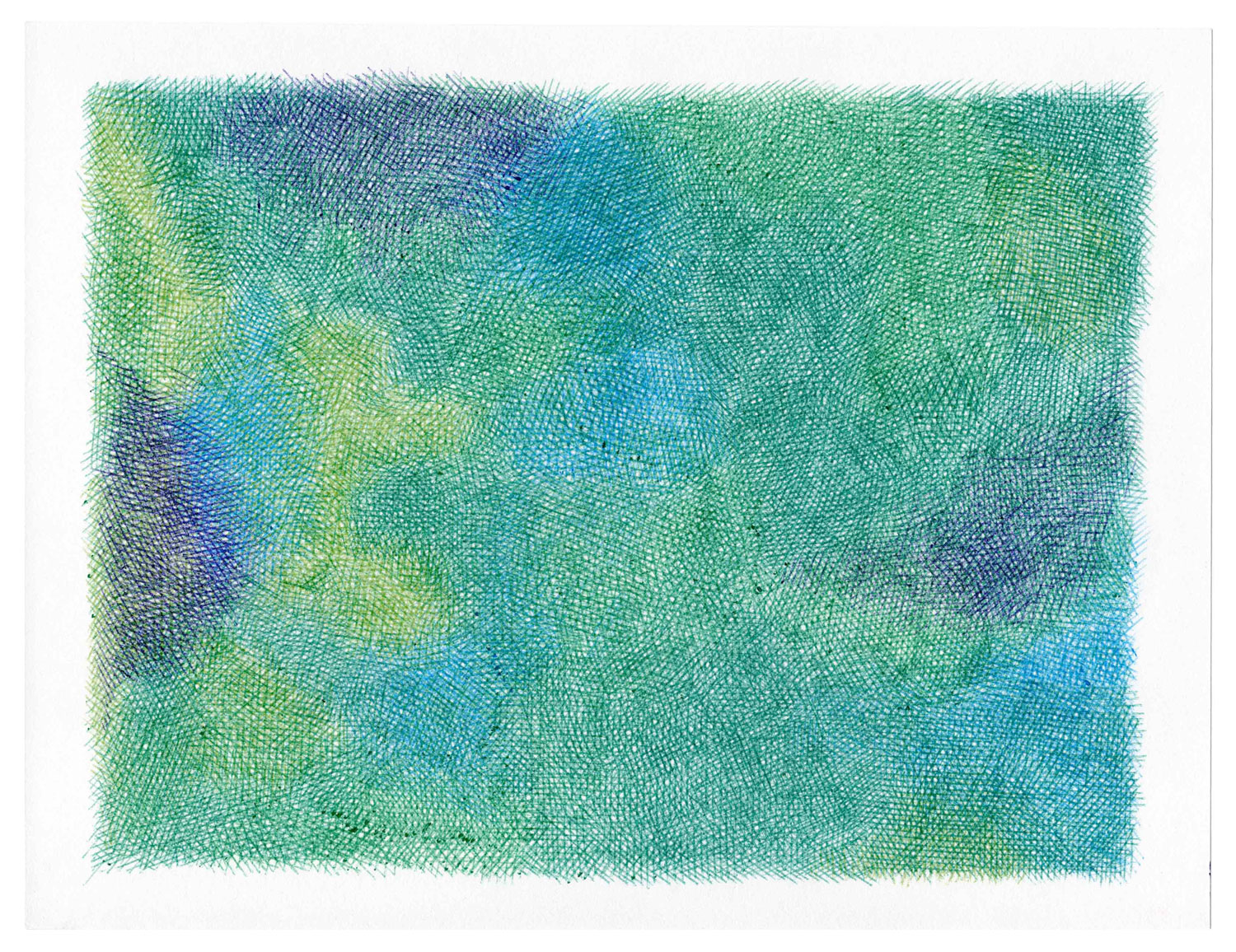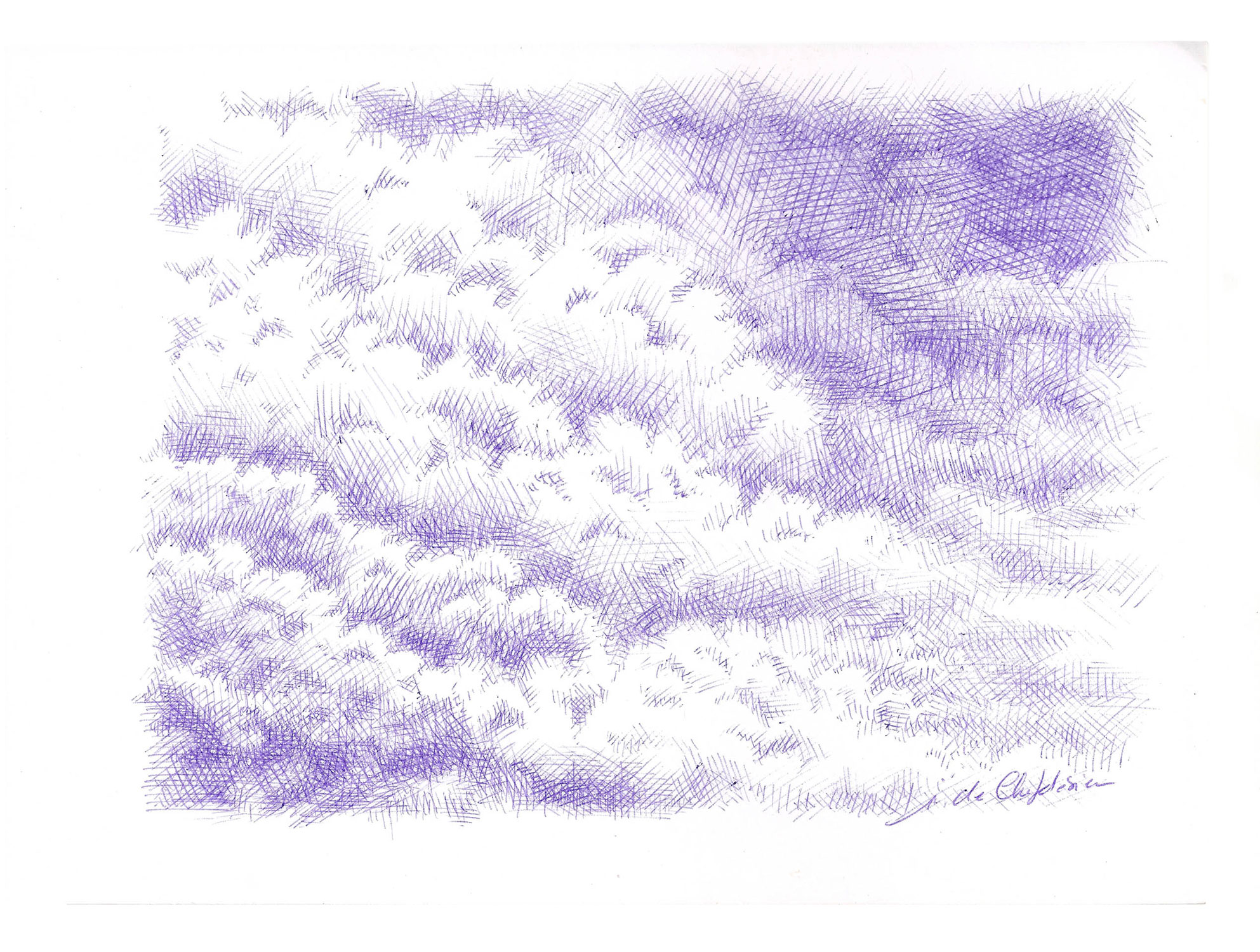 For the Sources series, which is more abstract, I drew inspiration from the vivid and deep colors of the Fosse Dionne, a wondrous spring in the town of Tonnerre. My approach remains unchanged: lines drawn with ballpoint pens.