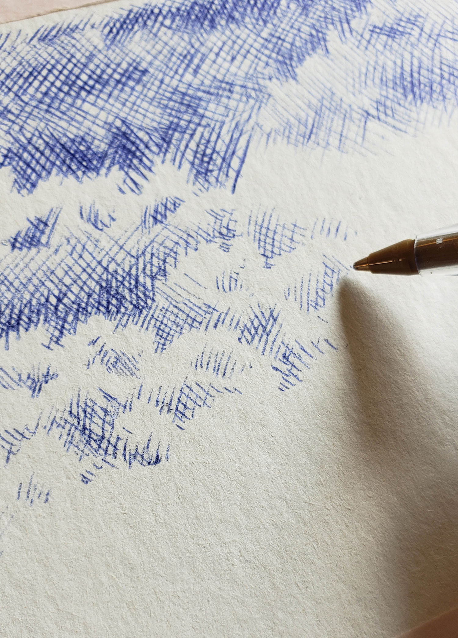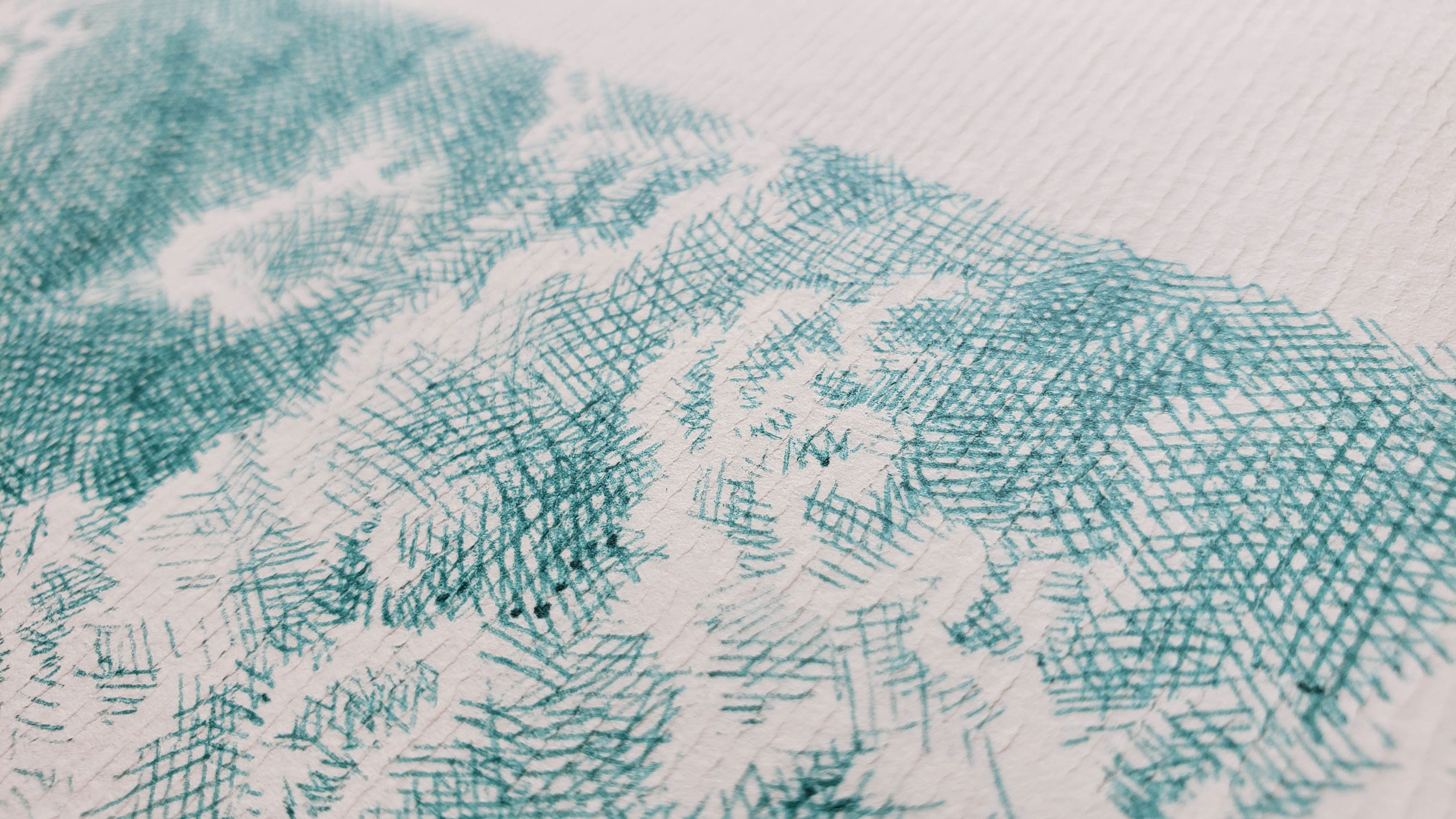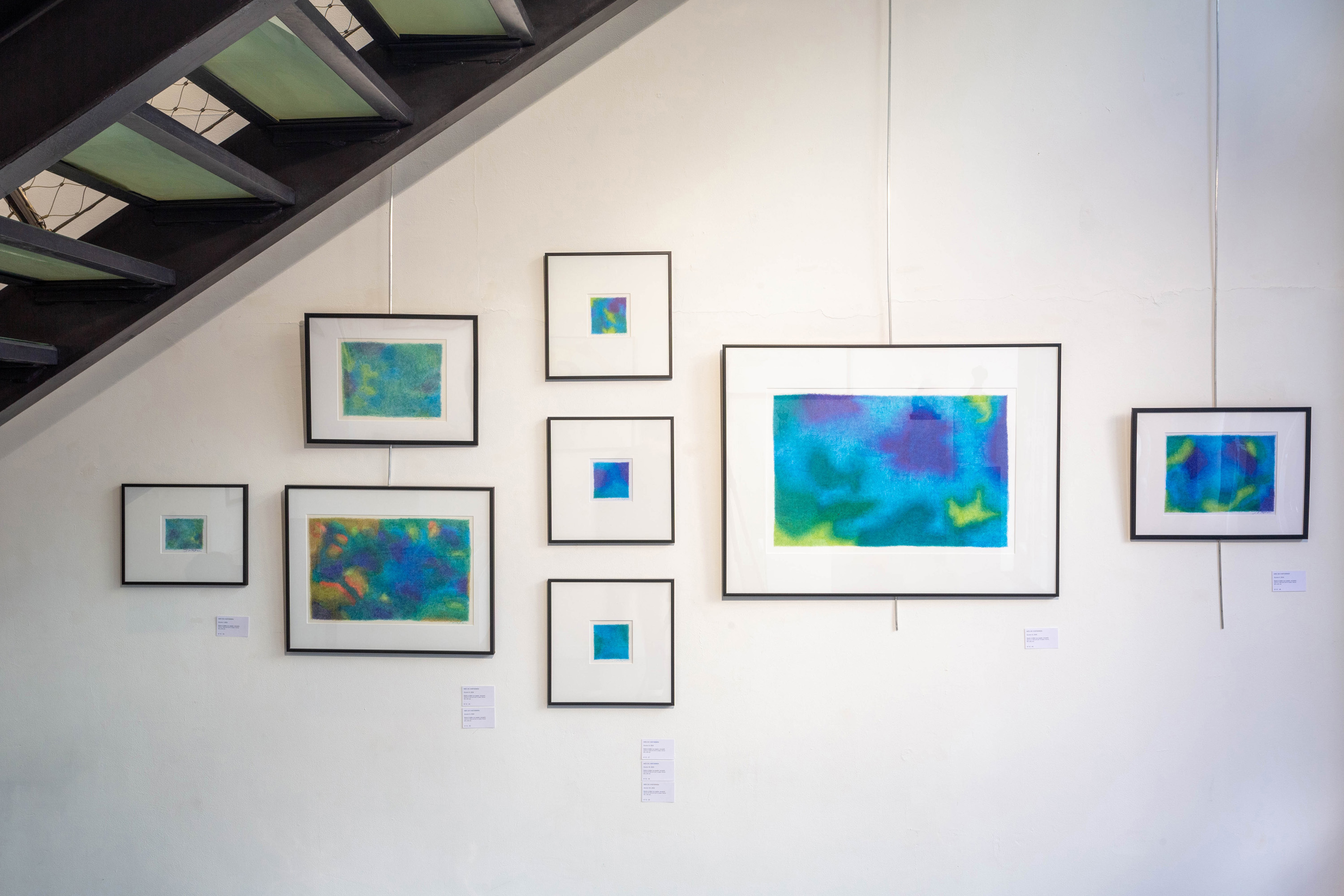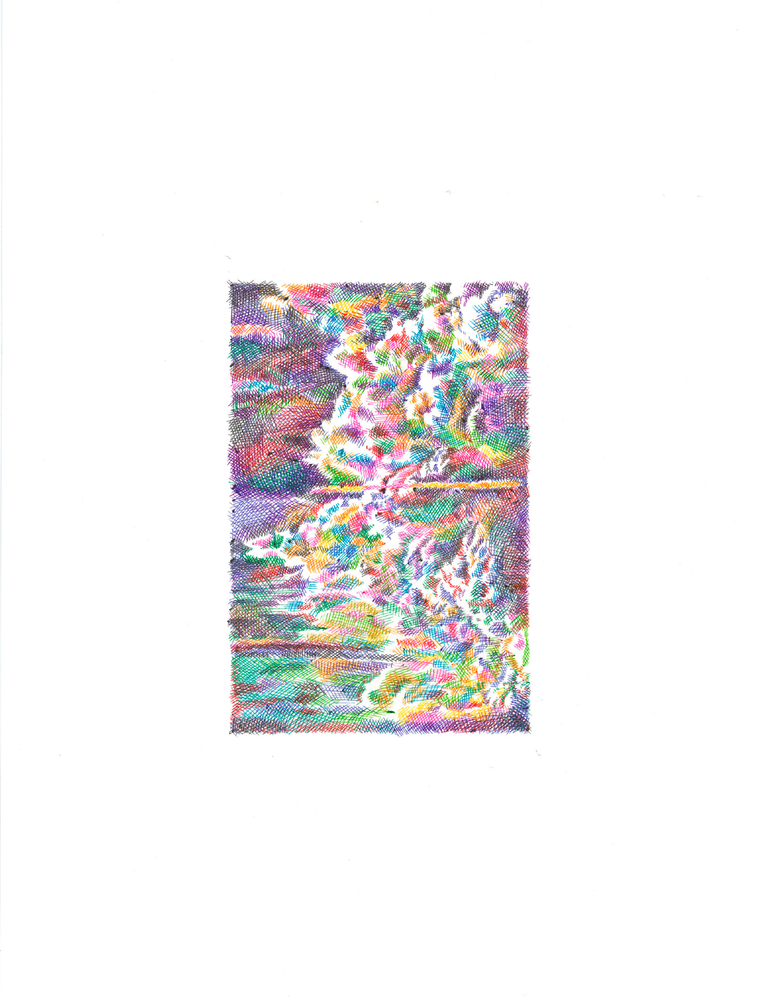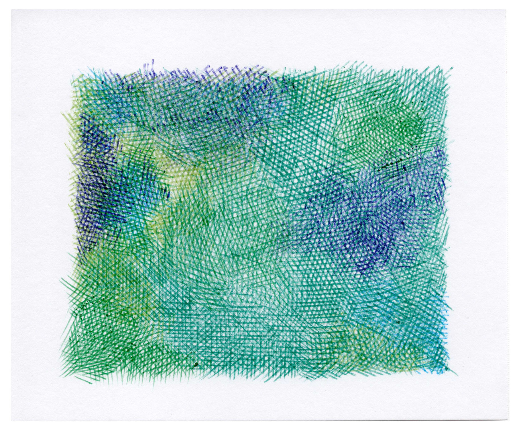 For the Sources series, which is more abstract, I drew inspiration from the vivid and deep colors of the Fosse Dionne, a wondrous spring in the town of Tonnerre. My approach remains unchanged: lines drawn with ballpoint pens.